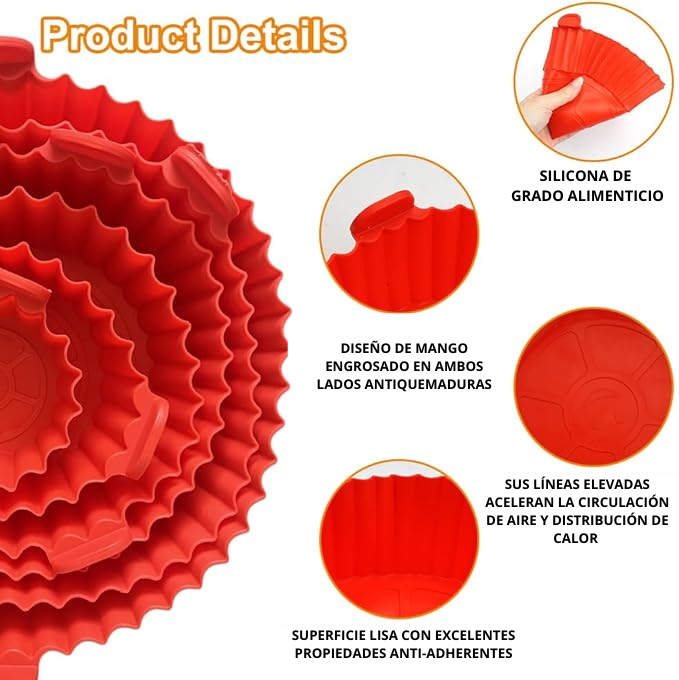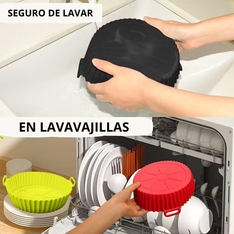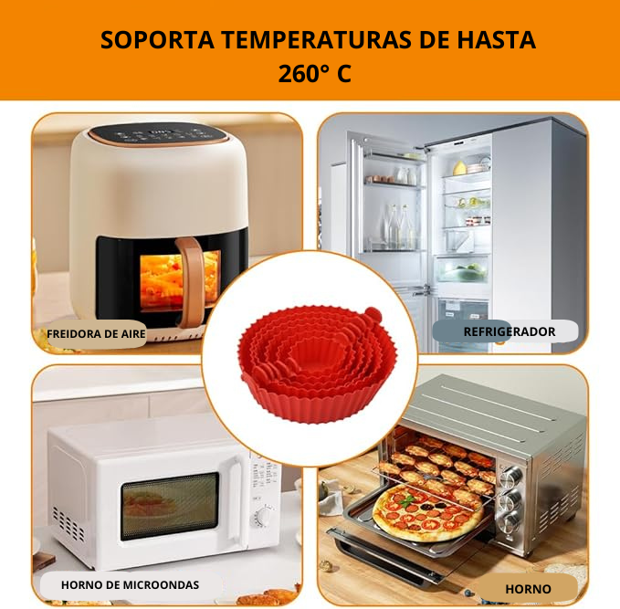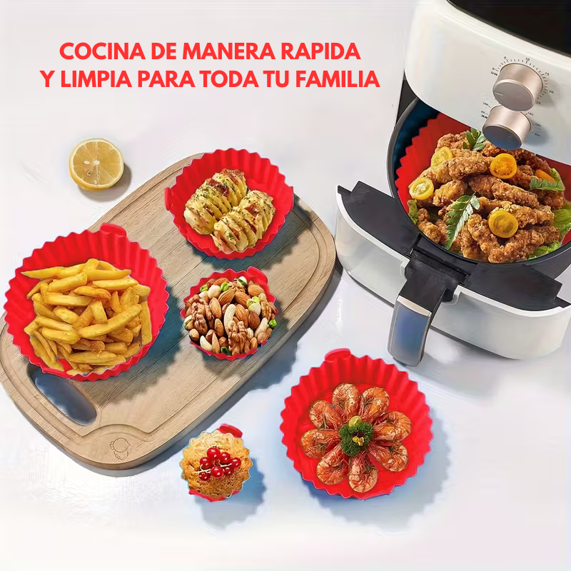 “Compré los moldes por probar y ahora no cocino sin ellos 😍 Mi air fryer queda limpia siempre, la comida no se pega y lavar es rapidísimo. Fue una compra excelente 🛒✨”