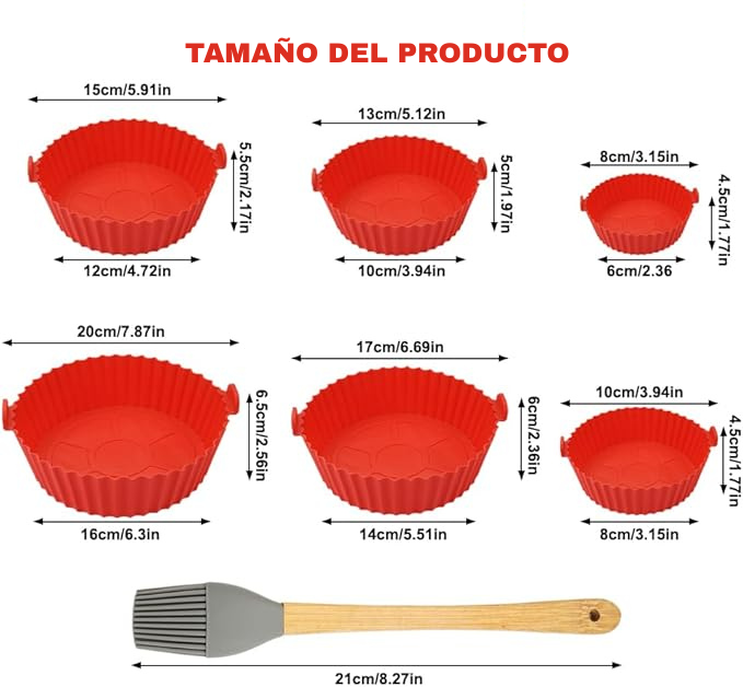 Sí ✅ Los moldes son flexibles y se adaptan a la mayoría de freidoras de aire redondas y cuadradas de tamaño estándar.