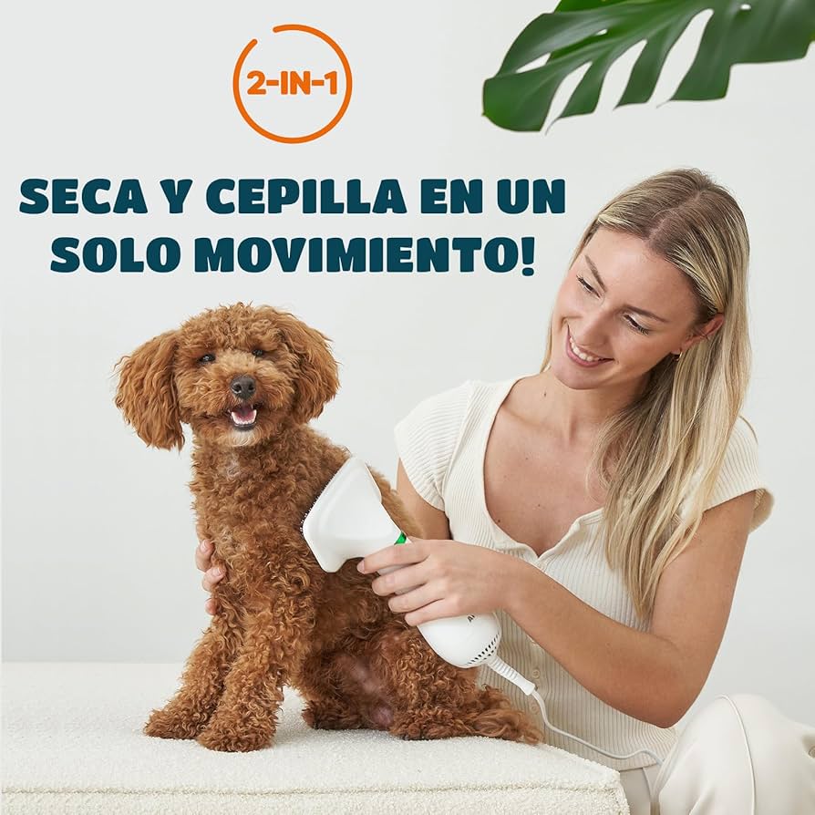 Sí. El cepillo integrado ayuda a desenredar mientras seca, ideal para pelajes largos, voluminosos o con tendencia a formar nudos.
