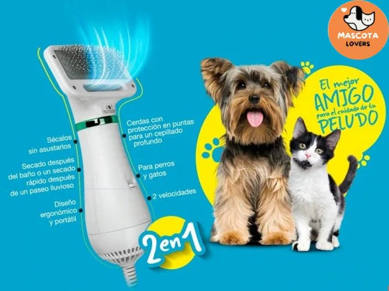 Sí. El secador 2 en 1 está diseñado para perros y gatos de todas las razas y tamaños. Sus niveles de temperatura controlada protegen la piel y el pelaje.